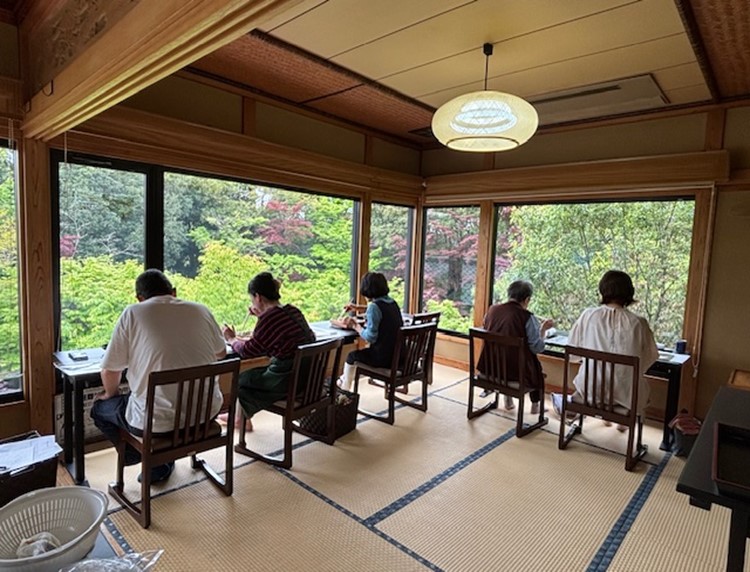 お出汁をつくった後は、和か葉自慢のお庭をご覧いただきながら、懐石弁当とお椀のご試食をしていただきました。